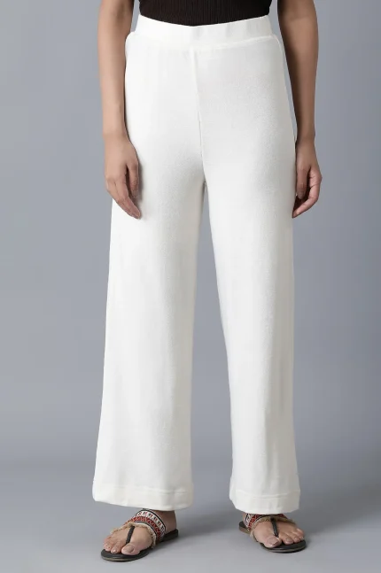White Solid Straight Fit Palazzo With Elasticated Waistband