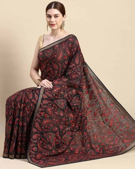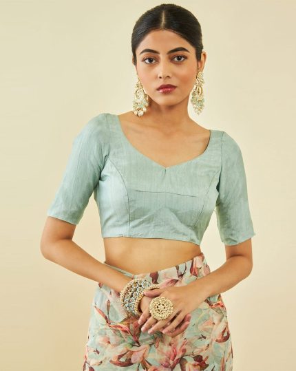 Comes with unstitched blouse fabric. To have the blouse stitched, please select the custom tailoring options. Blouses with elaborate patterns and colors are used for photo – shoot.Color and pattern of the blouse might not be as shown in the image