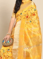 Step into the realm of timeless elegance with this exquisite Pink Assam Cotton Silk Saree meticulously crafted to captivate hearts and turn heads. The soft yet opulent fabric a fusion of Assam cotton and silk drapes gracefully offering comfort without compromising on sophistication. The delicate thread embroidery work adorning this saree adds an enchanting allure evoking a sense of traditional charm blended seamlessly with contemporary finesse. Each intricate detail speaks volumes about the skilled craftsmanship and dedication poured into its creation making it a true masterpiece. Accentuating its beauty is the temple contrast border a hallmark of South Indian craftsmanship which adds a regal touch to the ensemble. The juxtaposition of vibrant hues against the serene pink background creates a mesmerizing contrast elevating its allure to new heights. Perfect for exclusive soires and grand occasions this saree exudes an aura of exclusivity and sophistication making it an ideal choice for those who seek to make a statement with their attire. Whether its a lavish party or a cultural celebration this saree ensures you stand out with poise and grace. Embrace the timeless charm of Indian heritage while embracing modern sensibilities with this exclusive party wear saree. Its not just a garment its a testament to the rich cultural tapestry and the enduring legacy of Indian craftsmanship. Flaunt your style with confidence and grace as you adorn yourself in this resplendent attire destined to leave a lasting impression wherever you go.
