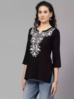 Black Kashmiri Embroidered Short Kurti