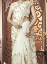 • If you are looking for a statement piece that captures both delicacy and tradition this cream organza saree delivers timeless elegance. Its refined embroidery and soft drape make it a versatile yet regal choice for important celebrations. It promises to leave an impression of grace with its airy texture and exquisite detailing that blends traditional handwork with modern charm.