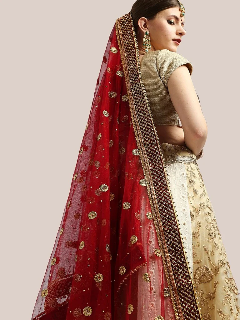 - This gorgeous net dupatta in auspicious colour can be used as a bridal Dupatta /Chunri to cover head and shoulders during functions and ceremonies. It can also be used to visit religious places and functions like mata ki chowki etc. This dupatta will be a wonderful addition to your wedding wardrobe.