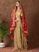 This stunning, versatile dupatta can be worn for weddings, Traditional Ceremonies like Engagement, Mehendi, Sangeet, Roka, Bhaat, Jalwa (Baby Shower), Marriage, Kua Pujan, Mangal Path, Festival, Function, Nangal, or any other rituals or traditional occasions.