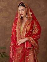 Home Dupatta Embroidered Red Bridal & Wedding Wear Net Dupatta