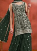 Green Georgette Embroidered Sequin Palazzo Set Festive Wear
