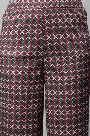 Pink Geometric Printed Straight Fit Palazzo With Elasticated Waist ₹1,200.00