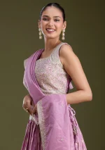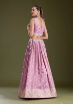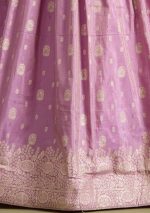 Lavender Readymade Lehenga in Banarasi fabric. The Lehenga is embellished with sequin embroidery. Accompanied by a Readymade blouse and dupatta. Comes with the Koskii promise of premium quality.