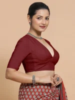 Malika x Rozaana | Deep Neck Saree Blouse in Cranberry Red Linen