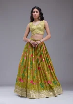 Home Lehenga Mehendi Sequins Georgette Readymade Lehenga