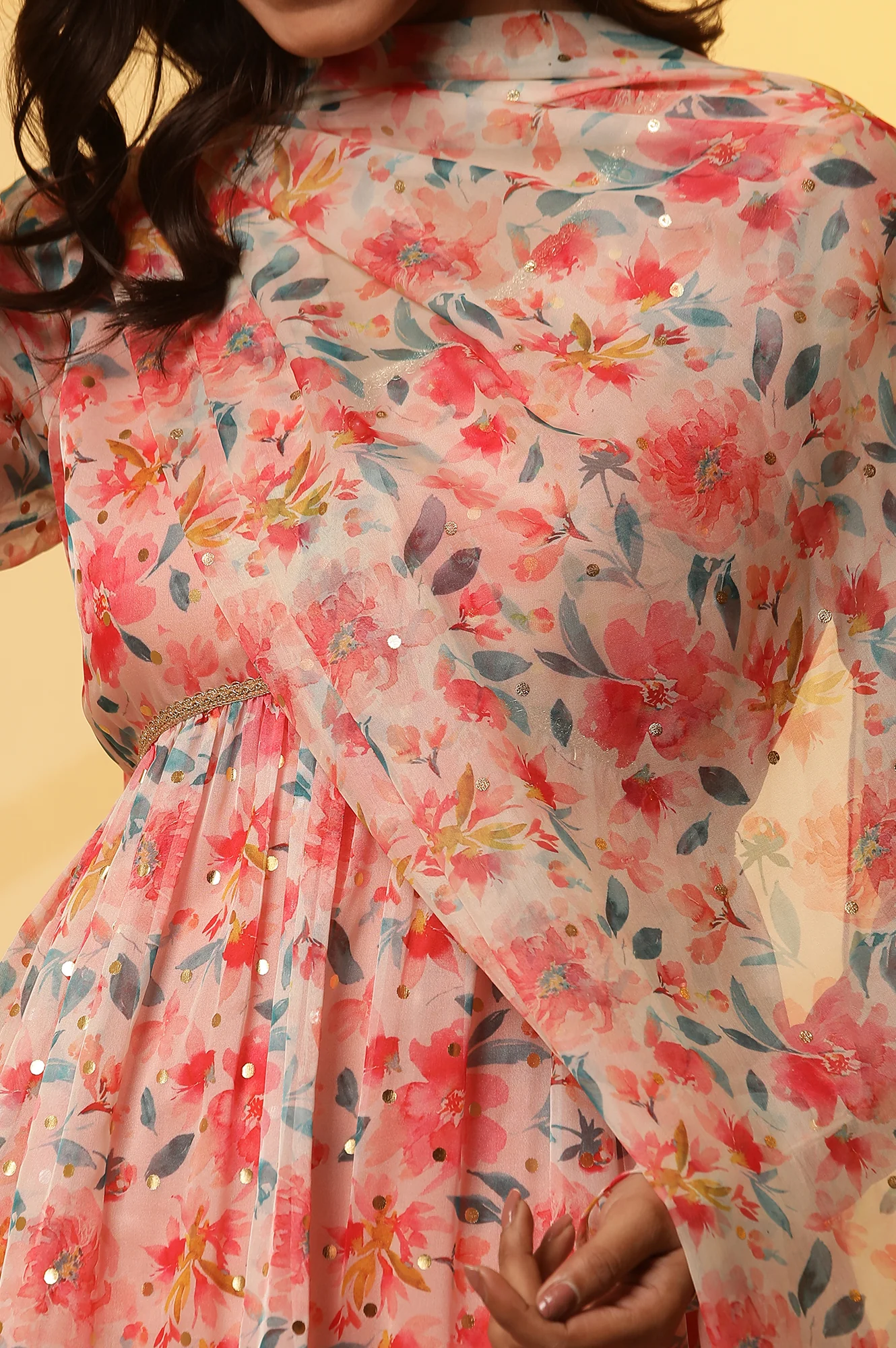 Home Dupatta Multi-coloured Floral Printed Organza Dupatta