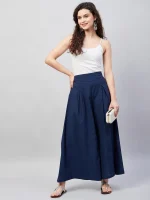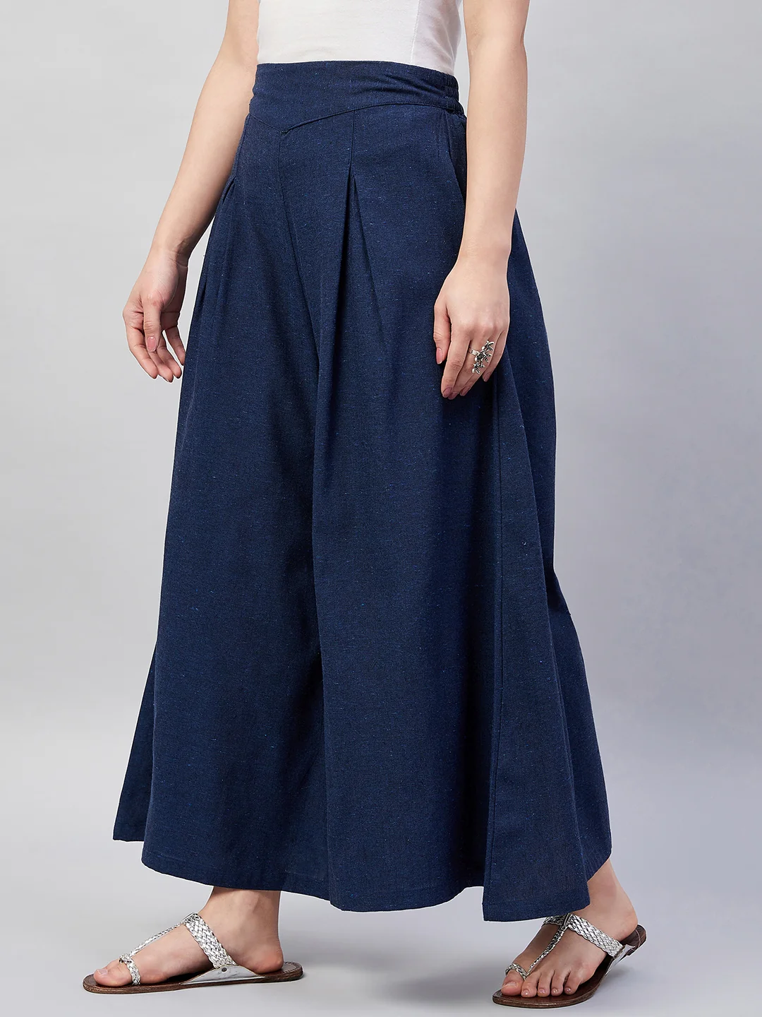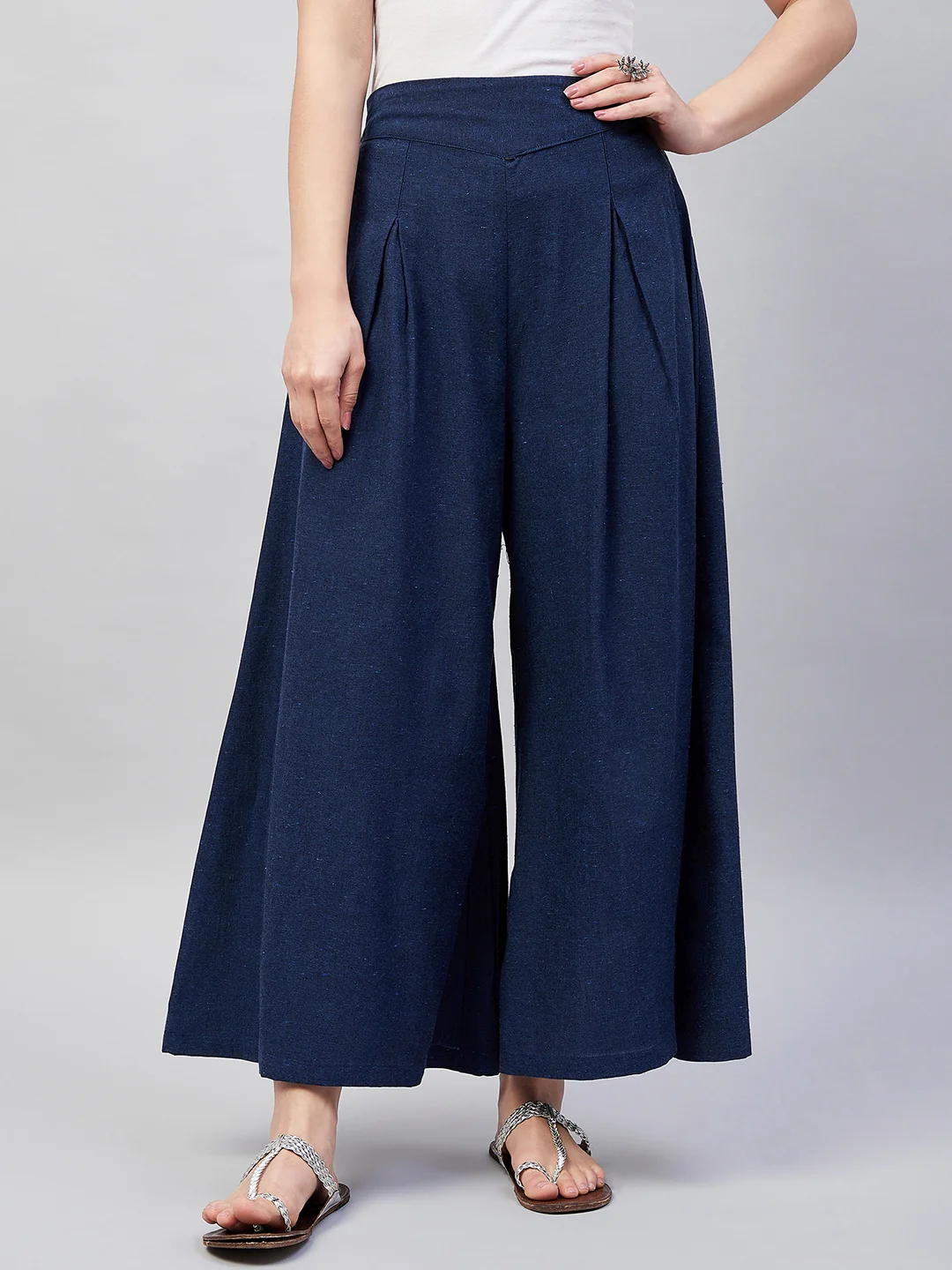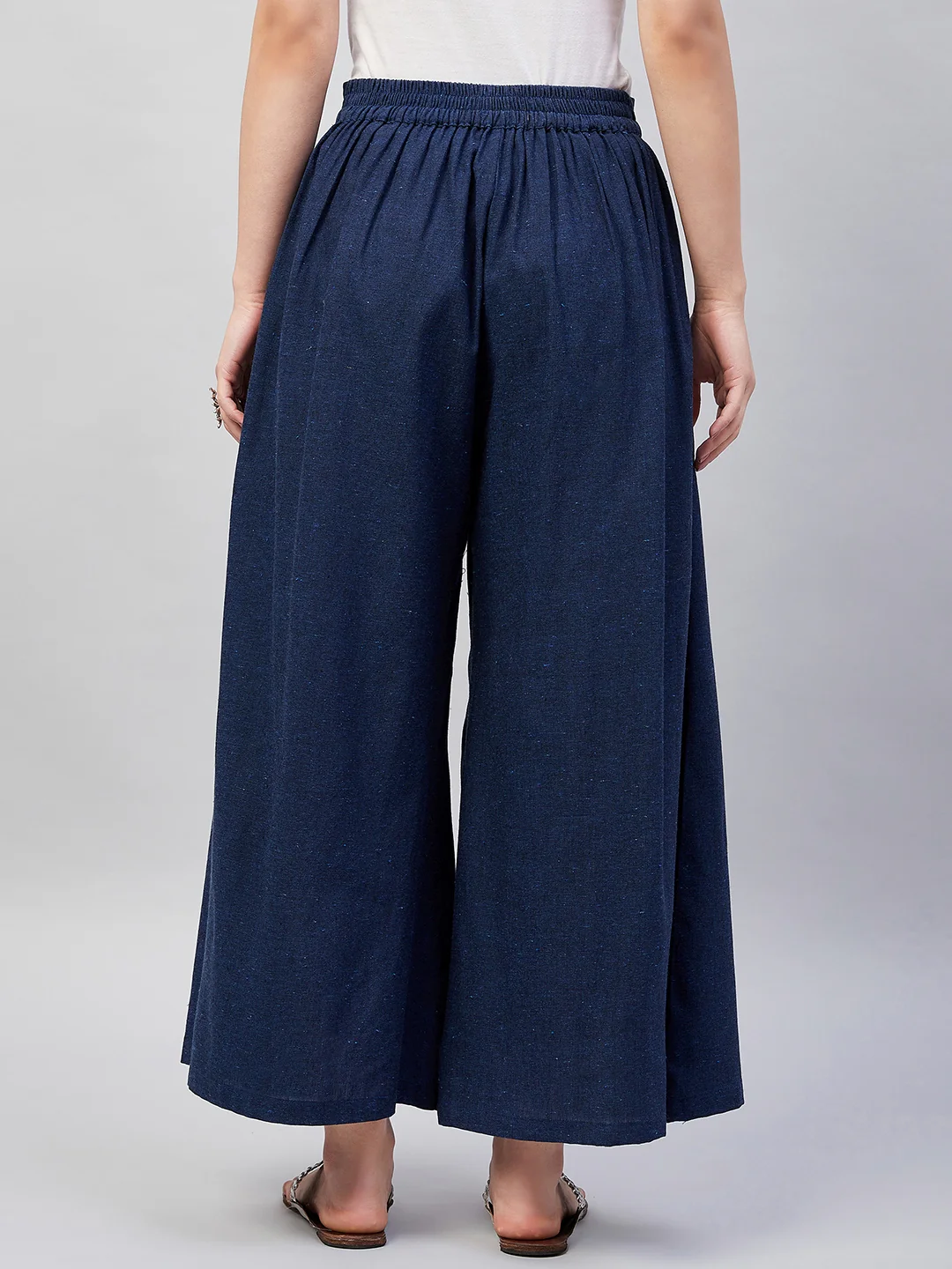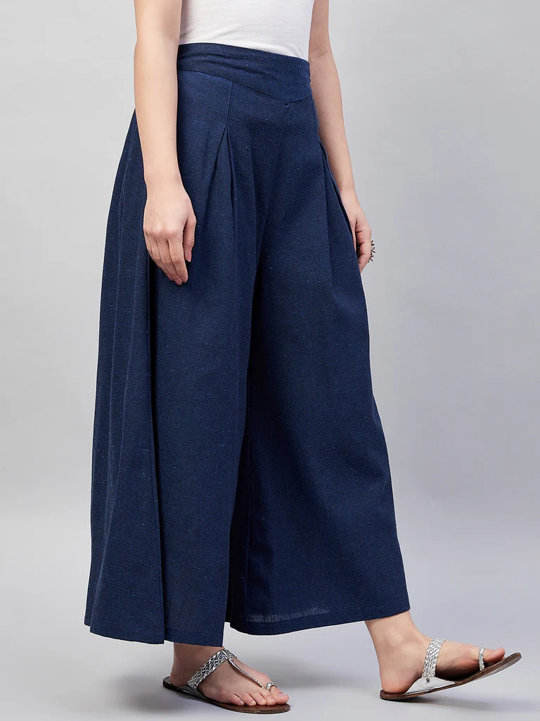 Home Palazzos & Pants Palazzos Navy Blue Smart Casual Handloom Palazzo