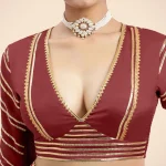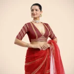 Navya x Tyohaar | Auburn Red Elbow Sleeves Saree Blouse