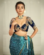Cobalt Blue Embellished Elbow Sleeves Saree Blouse with Plunging V Neckline with Tasteful Royal Blue Gota Lace