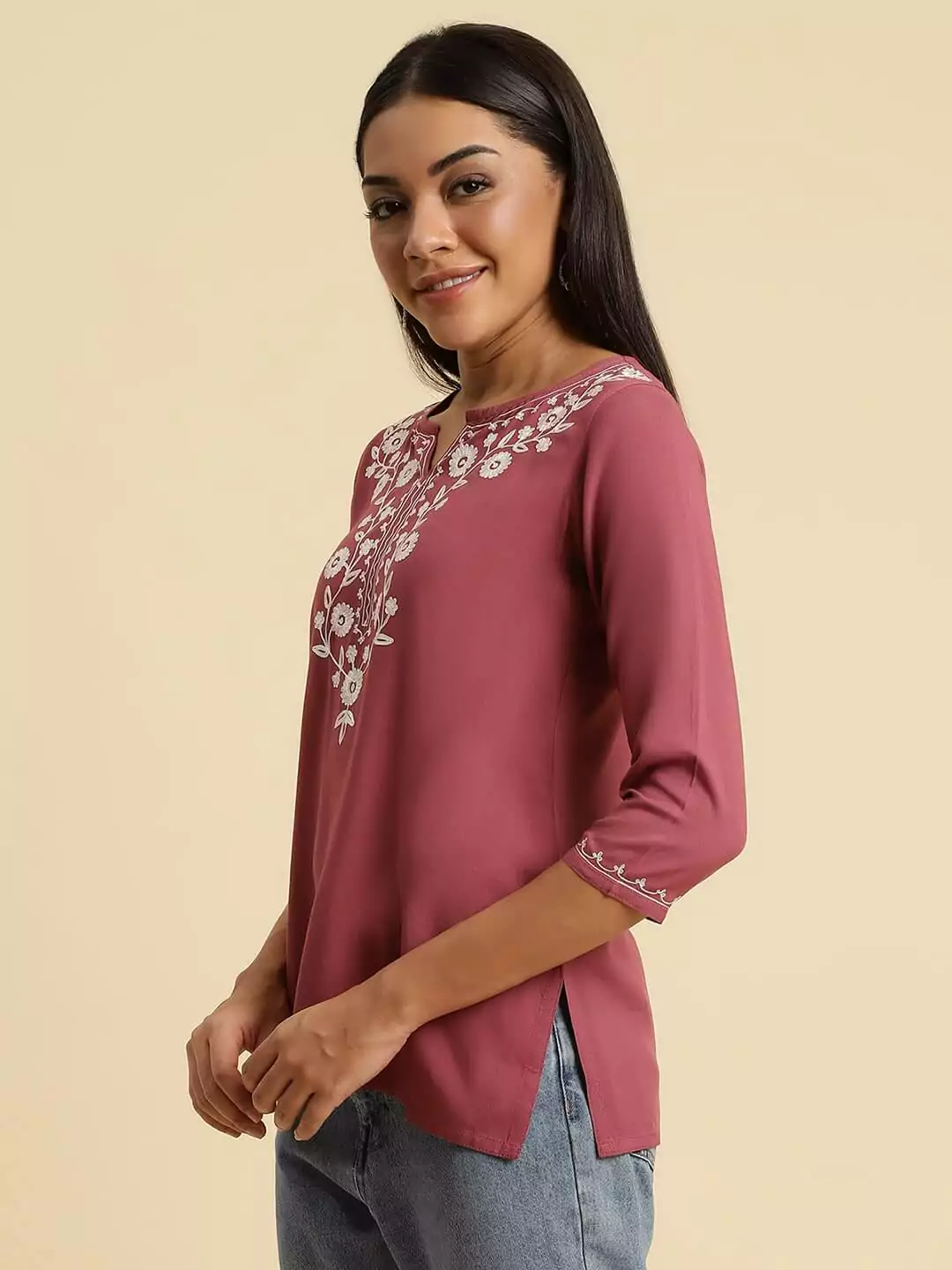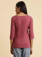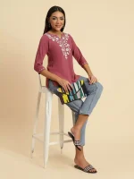 Pink Kashmiri Silk Work Short Kurti
