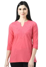 Pink Self Chikankari Short Kurti