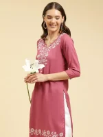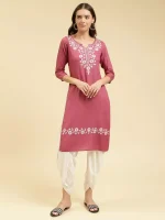 Look ethereal in this Aari work Kurti, crafted with Silk Thread.