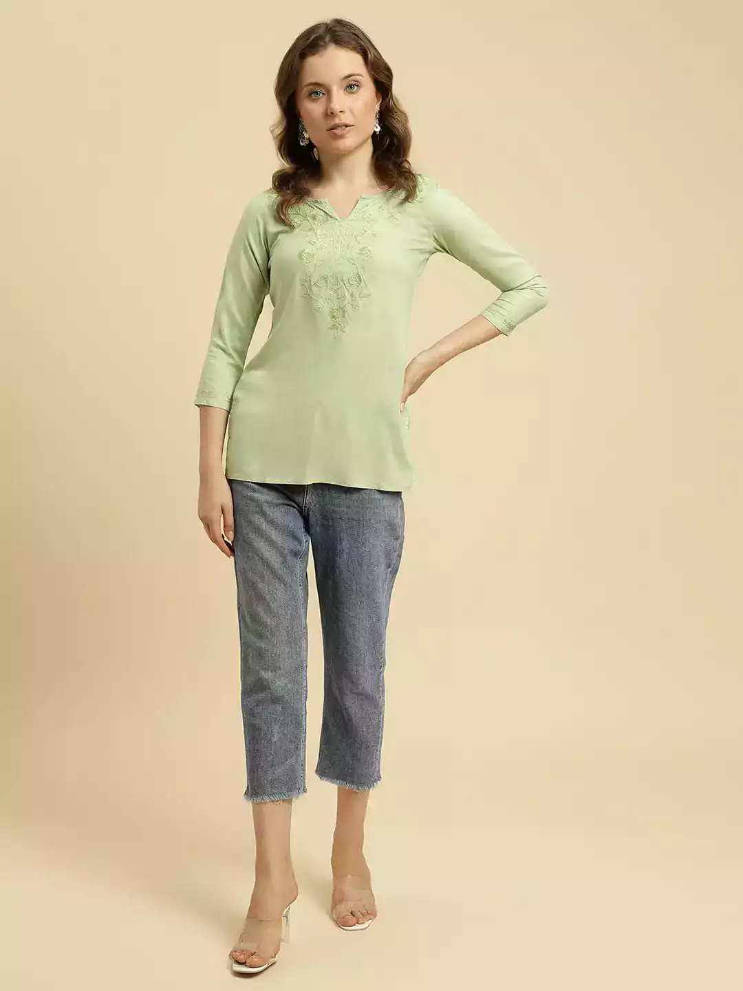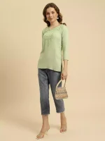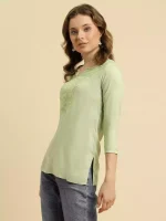 Look ethereal in this Aari work Kurti, freshly crafted in the lightness and comfy feel of cotton.