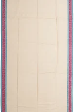 Elegant in its simplicity, this Plain Beige Bengal Cotton Saree is beautifully complemented by a serene sea blue border featuring fine threadwork and subtle geometrical designs. The self-coloured pallu is adorned with threadwork diamond buttas and matching geometrical patterns, finished with soft tassels for a graceful touch. Paired with a plain self blouse with a border, it’s ideal for understated, everyday elegance.