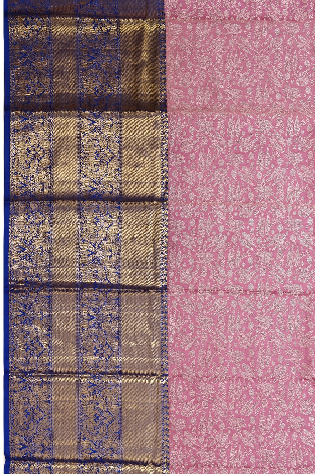 Purple Kanchipuram Silk Saree with Kili, Yanai, and Mayil Motifs