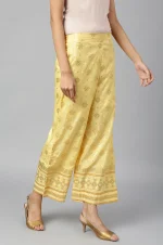 Home Palazzos & Pants Palazzos Regular Fit Polyester Gold Printed Palazzos