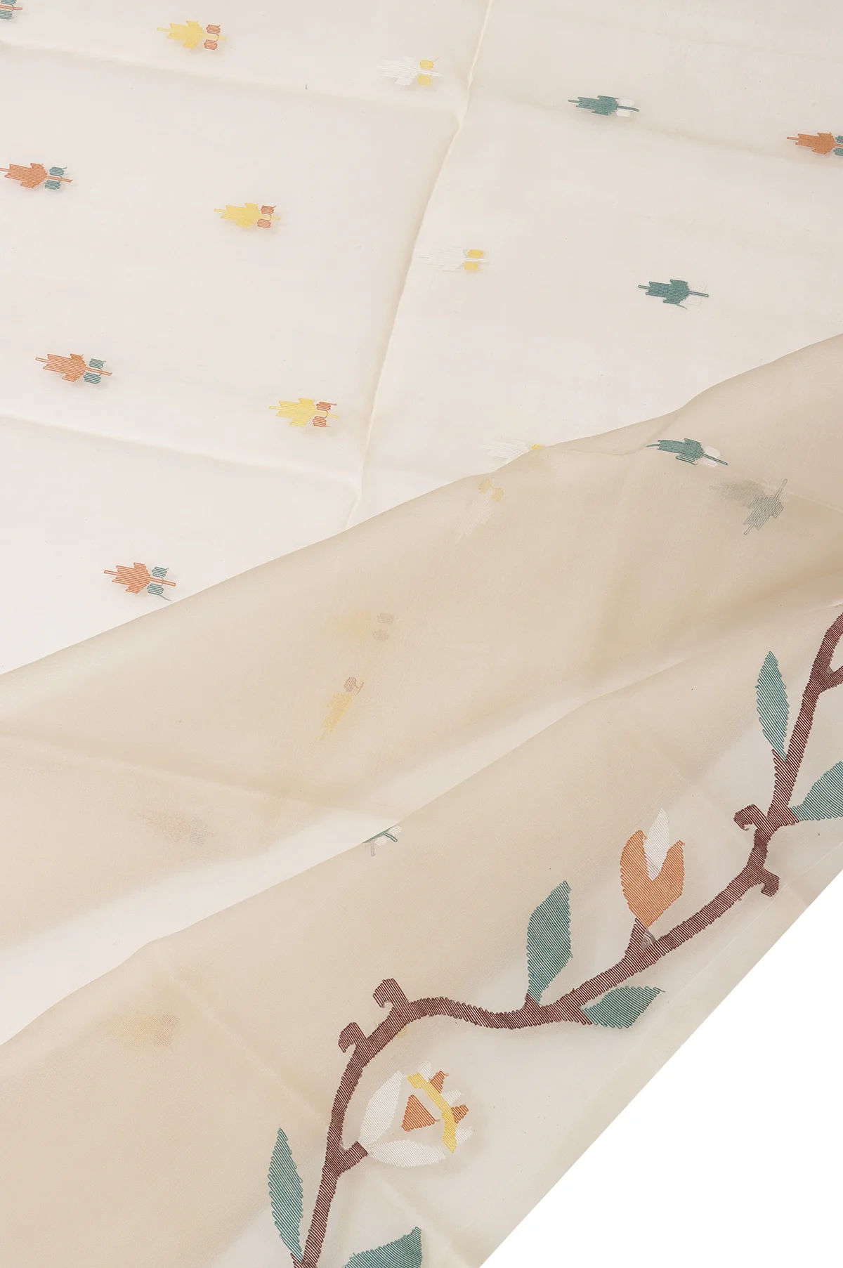 Ironing: Iron the saree on a low to medium setting while it’s slightly damp. Use a cotton or muslin cloth on top of the saree to protect delicate embroidery or zari work.