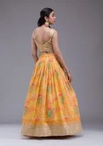 Step into the spotlight with radiant orange georgette lehenga, where every twirl glistens with the lively sparkle of sequin embroidery. Designed to celebrate you, this ready-to-wear ensemble winks at tradition with a bold, contemporary flair. It’s your time to dazzle, embodying effervescent elegance effortlessly at any festive gathering!.