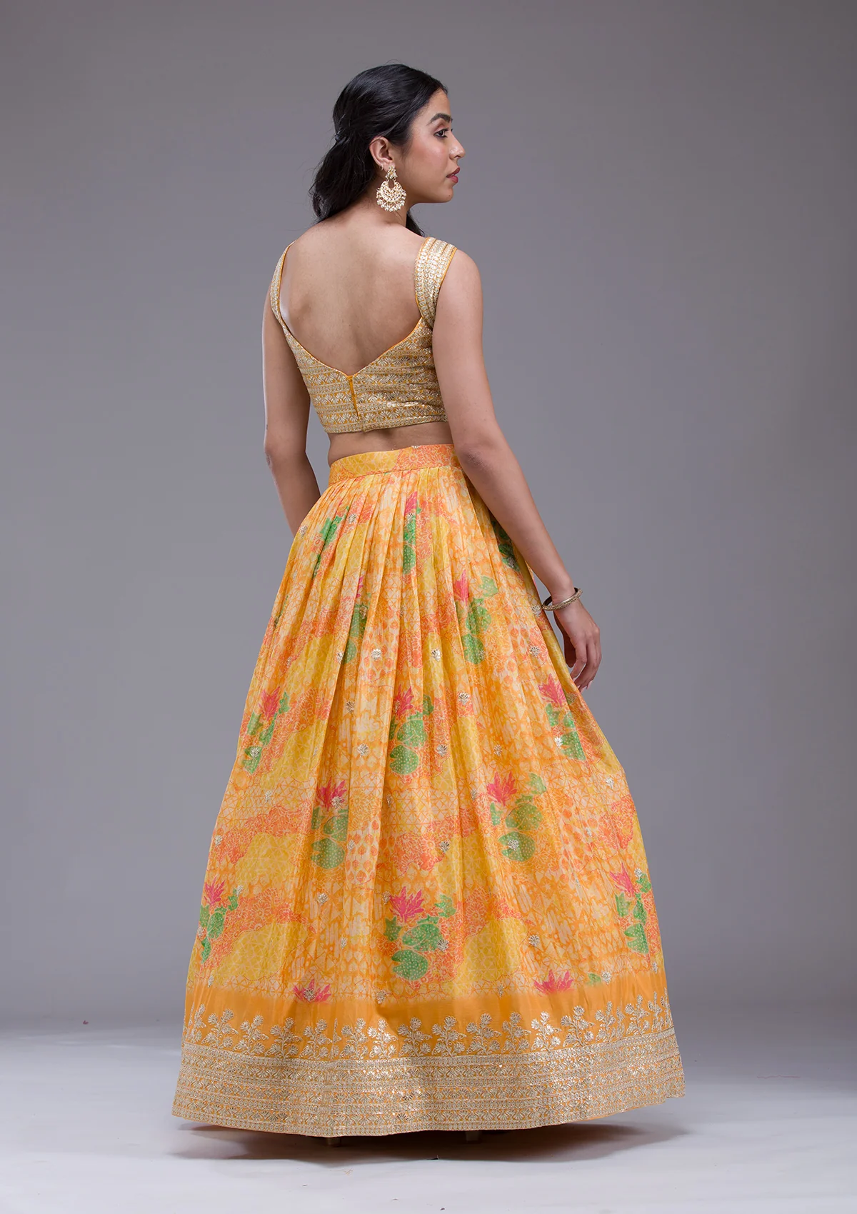 Orange Cutdana Georgette Readymade Lehenga ₹4,000.00