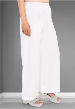 Elegantly crafted with intricate schiffli embroidery, this lightweight palazzo offers a perfect blend of comfort and style. The silhouette is designed for effortless movement, along with two side pockets, making it a versatile addition to both casual and formal wardrobes. Ideal for adding a touch of traditional charm with modern flair.