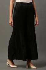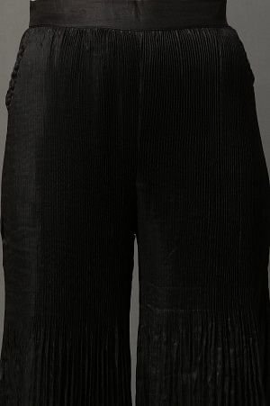 Black Solid Flared Rayon Palazzo With Pleats ₹2,600.00
