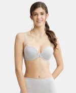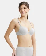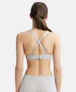 Home Bra Non Padded Bra Steel Grey Mélange Padded Wired Super Combed Cotton Elastane Stretch Medium Coverage Pushup Bra with Plunge Neck