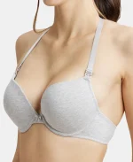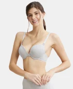 Steel Grey Mélange Padded Wired Super Combed Cotton Elastane Stretch Medium Coverage Pushup Bra with Plunge Neck