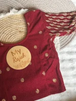 Navya x Tyohaar | Auburn Red Elbow Sleeves Saree Blouse