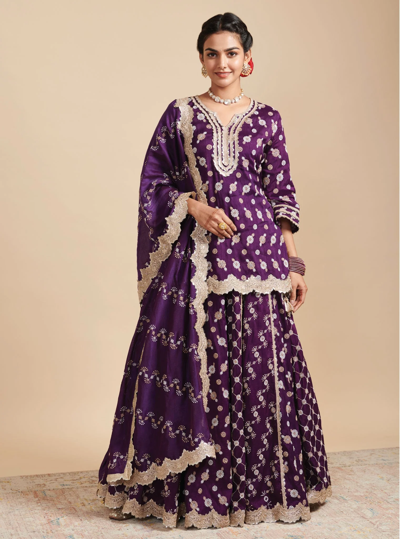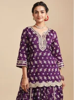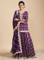 Surkh Silk Purple Kurta with Lehenga Set