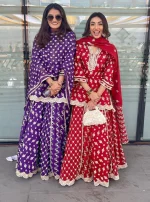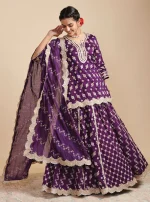 Home Lehenga Surkh Silk Purple Kurta with Lehenga Set