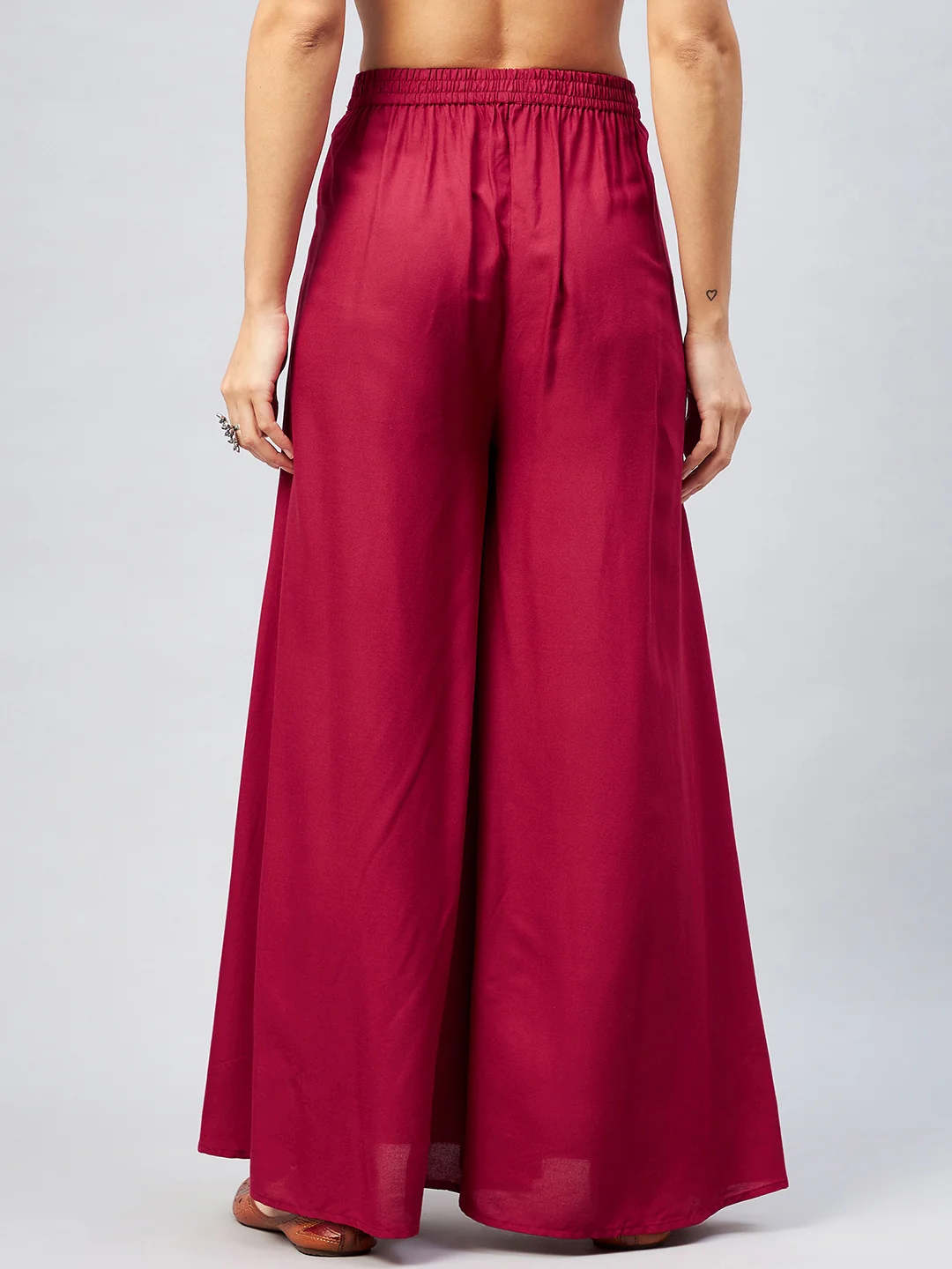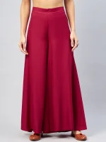 Viscose Rayon Solid Maroon Handloom Palazzo