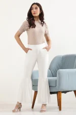 Home Palazzos & Pants Palazzos White Lace Insert Pintuck Trousers