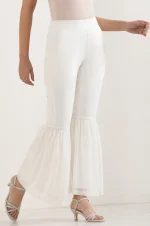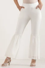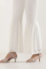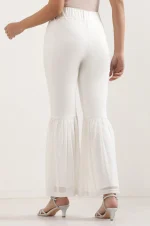 Elegantly crafted with intricate Schiffli embroidery, this lightweight palazzo offers a perfect blend of comfort and style. The silhouette is designed for effortless movement, along with two side pockets, making it a versatile addition to both casual and formal wardrobes. Ideal for adding a touch of traditional charm with modern flair.