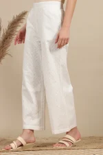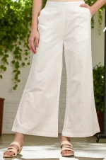 Home Palazzos & Pants Palazzos White Schiffli Embroidered Pure Cotton Flared Palazzo Pants