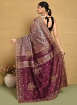 Wine Kancheepuram Silk Hand Embroidered Saree Wedding Wear