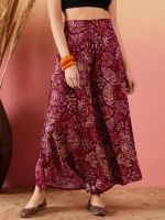 Teal Maroon Printed Leaf Print Foil Palazzo ₹950.00