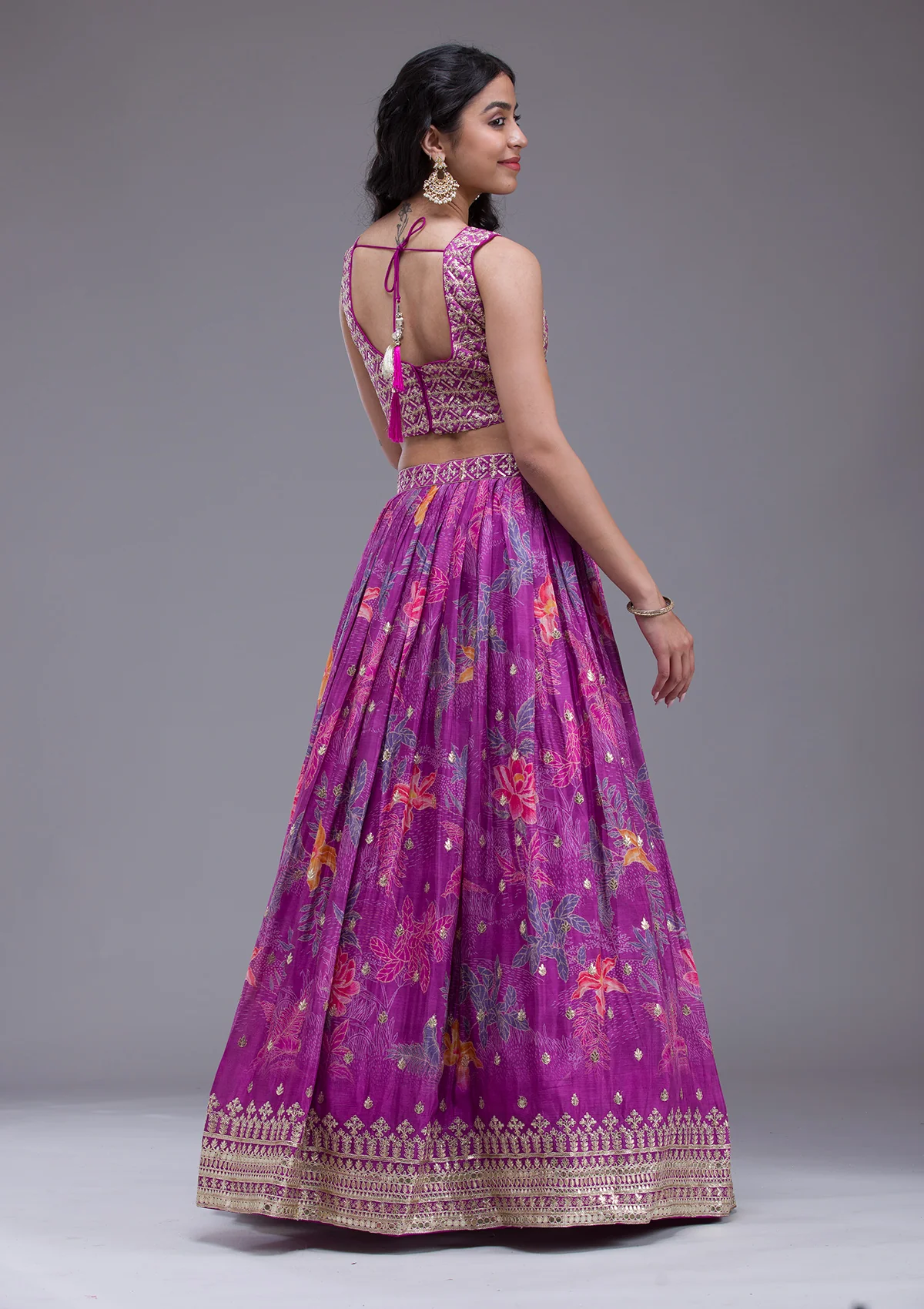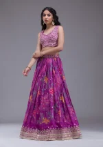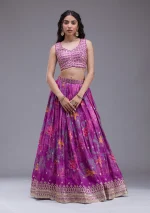 Illuminate any room with the exuberant spark of radiant purple Georgette Lehenga, adorned with dazzling sequins that dance under the lights. This masterpiece blends luxurious georgette fabric with meticulous embroidery to craft a silhouette that’s as breathtaking as it is comfortable. Perfect for those who love to express their vibrant, playful spirit, this lehenga promises to make every twirl memorable!.