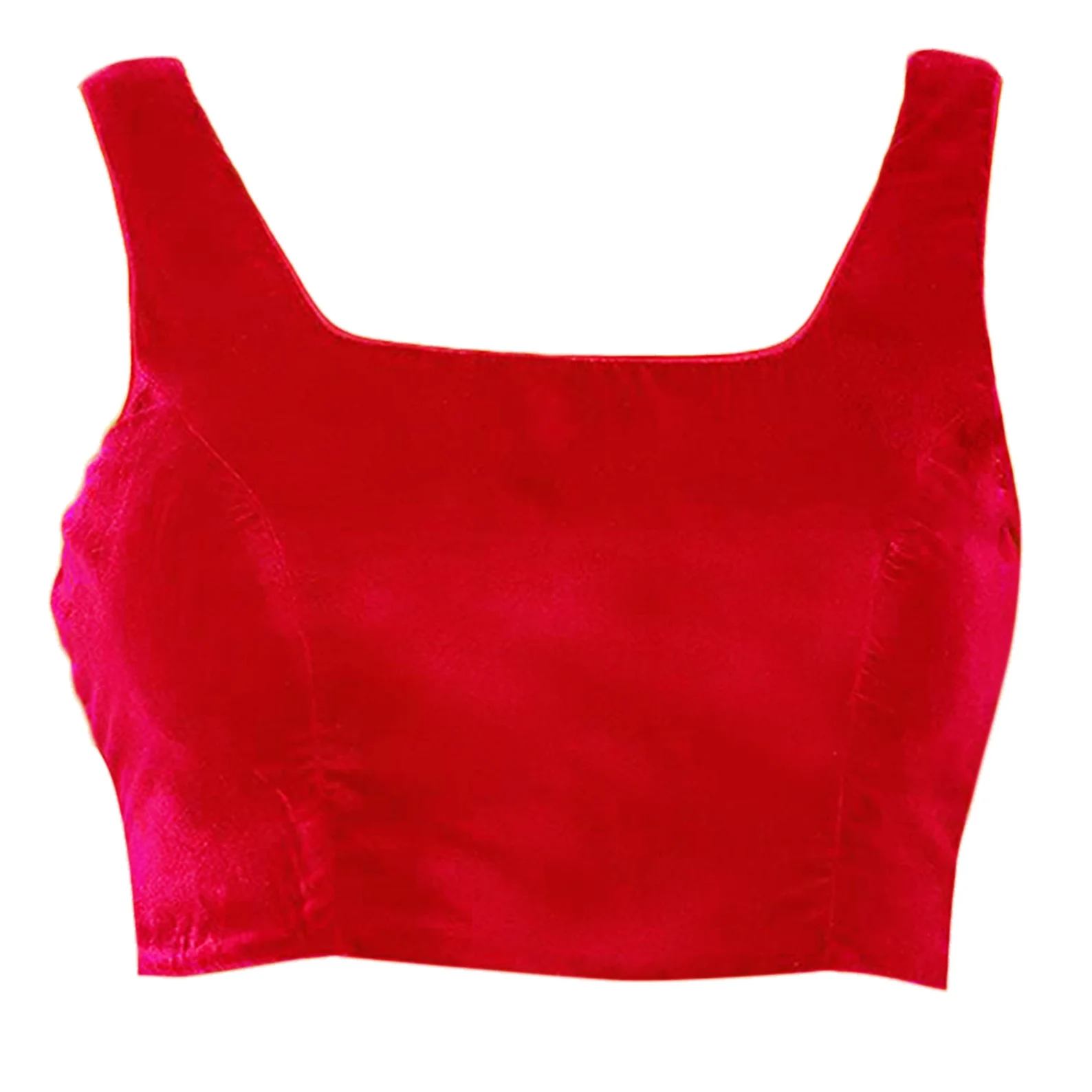 * Women’s Velvet Blouse Stitched Solid Sleeveless Fancy Handmade For Lehenga Sari Skirt Blouse