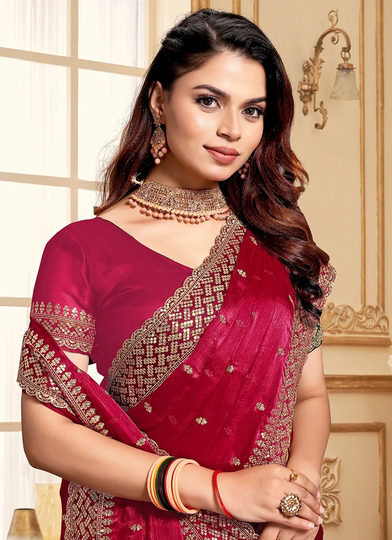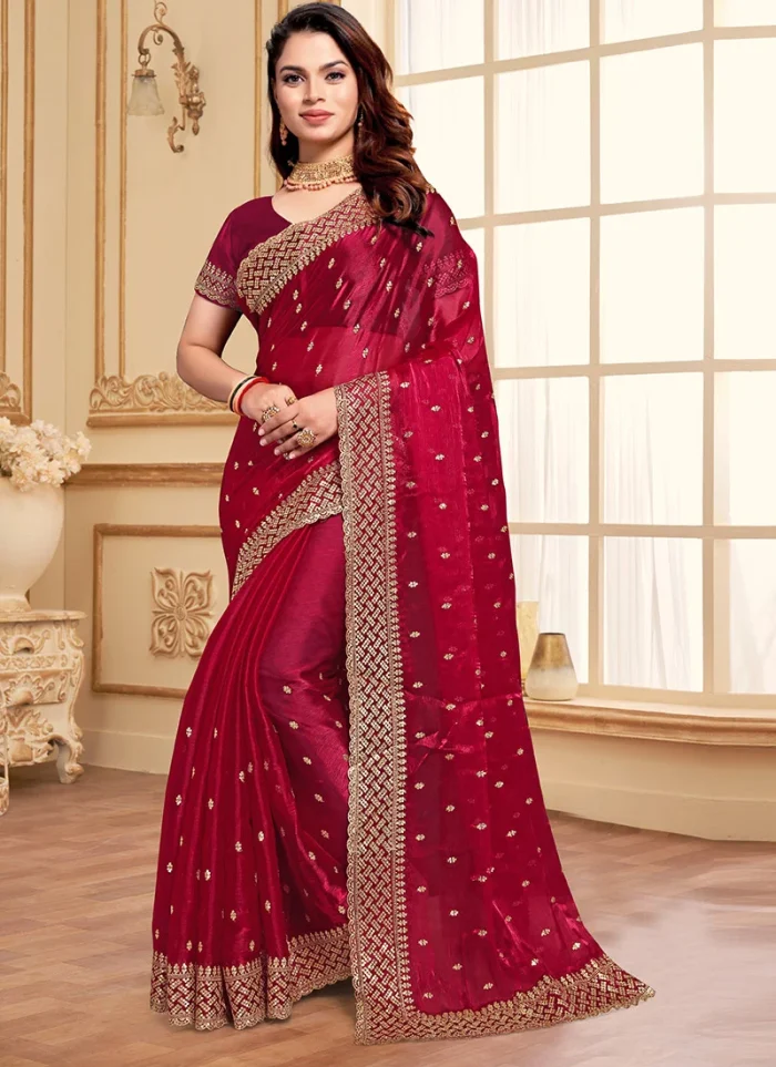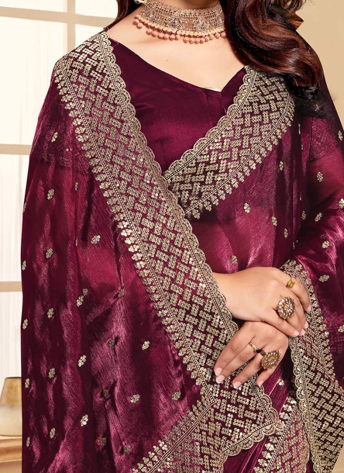 The Rust Zari Embroidered Sequins Saree is a stunning ensemble that perfectly blends elegance and craftsmanship. This saree is designed to make a bold statement with its luxurious Rust fabric enhanced by intricate zari embroidery and shimmering sequins. The combination of Rust with golden zari work creates a striking contrast, making this saree a showstopper for any grand occasion. The embroidery follows traditional patterns seamlessly blending with the modern sequins detailing, which adds a touch of contemporary sophistication to the attire. The saree drapes gracefully, exuding a timeless charm that complements various body types.