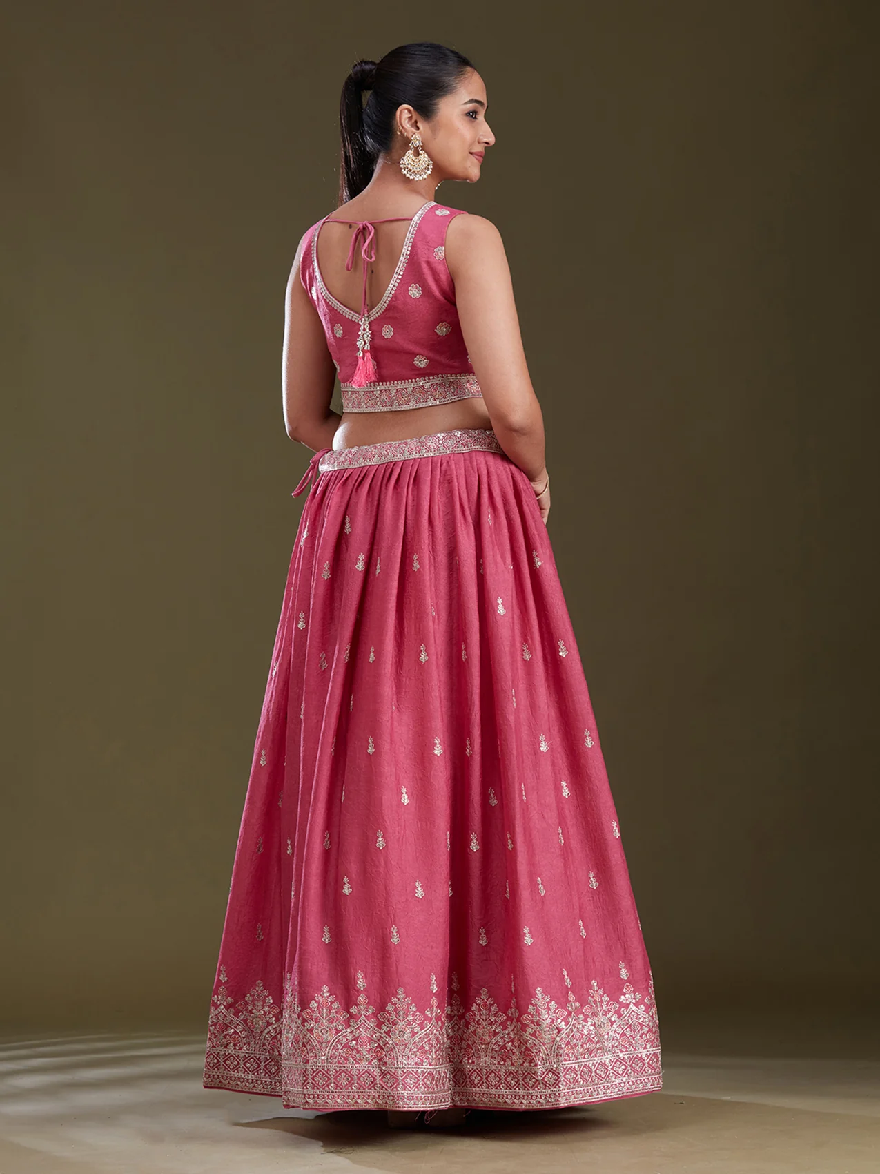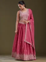 Readymade Lehenga in Soft Raw Silk fabric. The Lehenga is embellished with Zariwork (Silver) embroidery. Accompanied with an Readymade blouse and dupatta. Comes with the Koskii promise of premium quality.